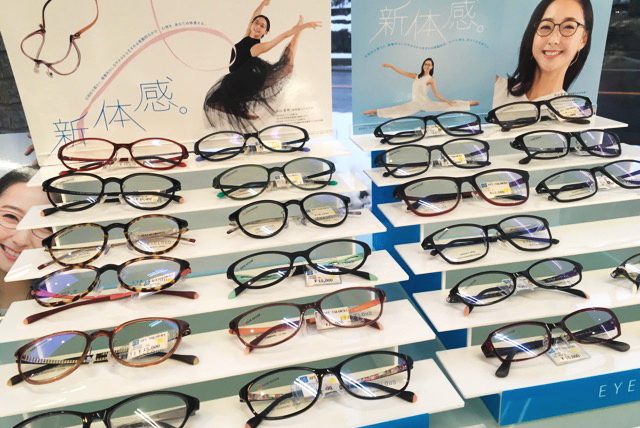 店頭には色々なデザイン・カラーバリエーションの「アイクラウド」のフレームがあるので