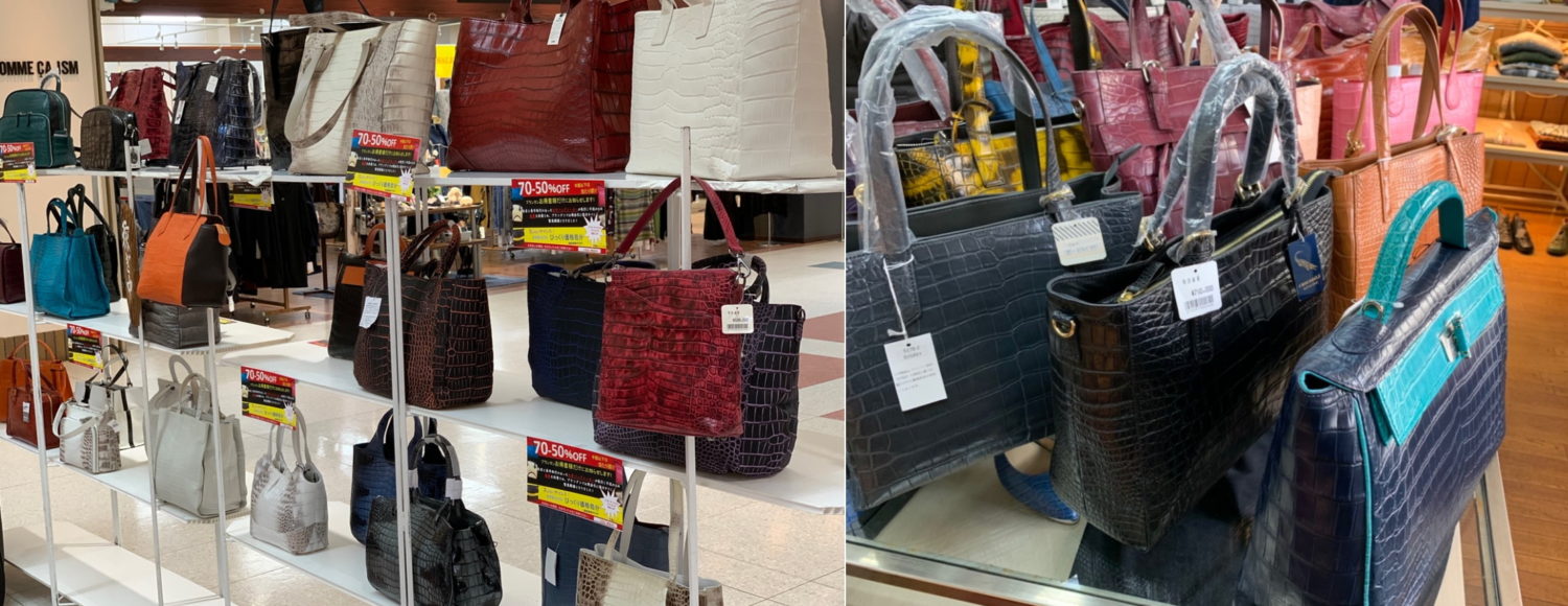 フォーマルな場面で活躍するシャークのバッグ、クロコダイル、オーストリッチ、パイソンBAGなど大量展示!