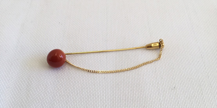 ご主人のピンブローチと奥様のプローチは共に赤珊瑚の丸玉です