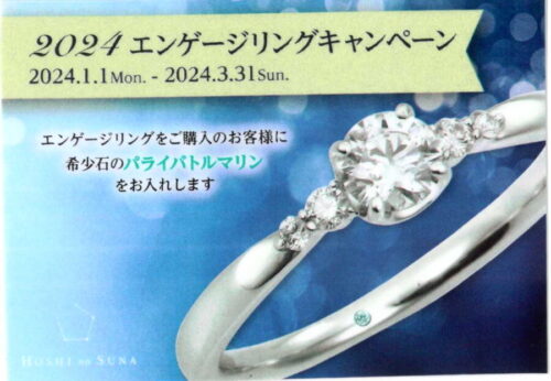 「星の砂」のエンゲージリングキャンペーンが始まっております。